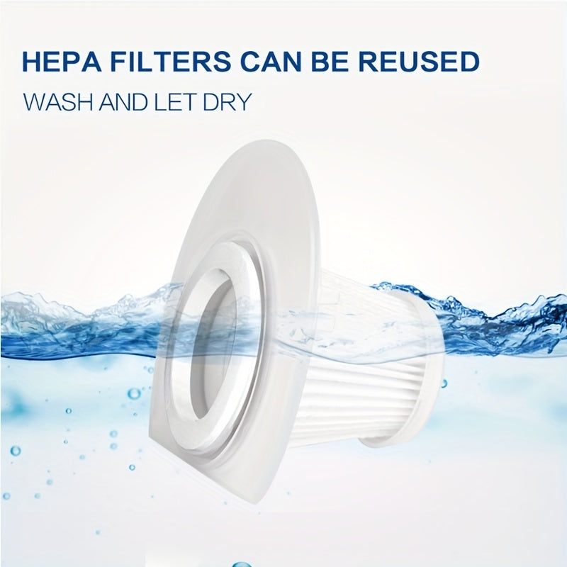 The vacuum includes a 0.2–0.3L dust cup, ideal for small cleaning tasks, and a washable cloth filter that supports repeated use.